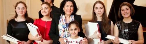 The president of Georgia, Salome Zurabishvili, who hosted the young pianist, gifted them with publications of musical works.