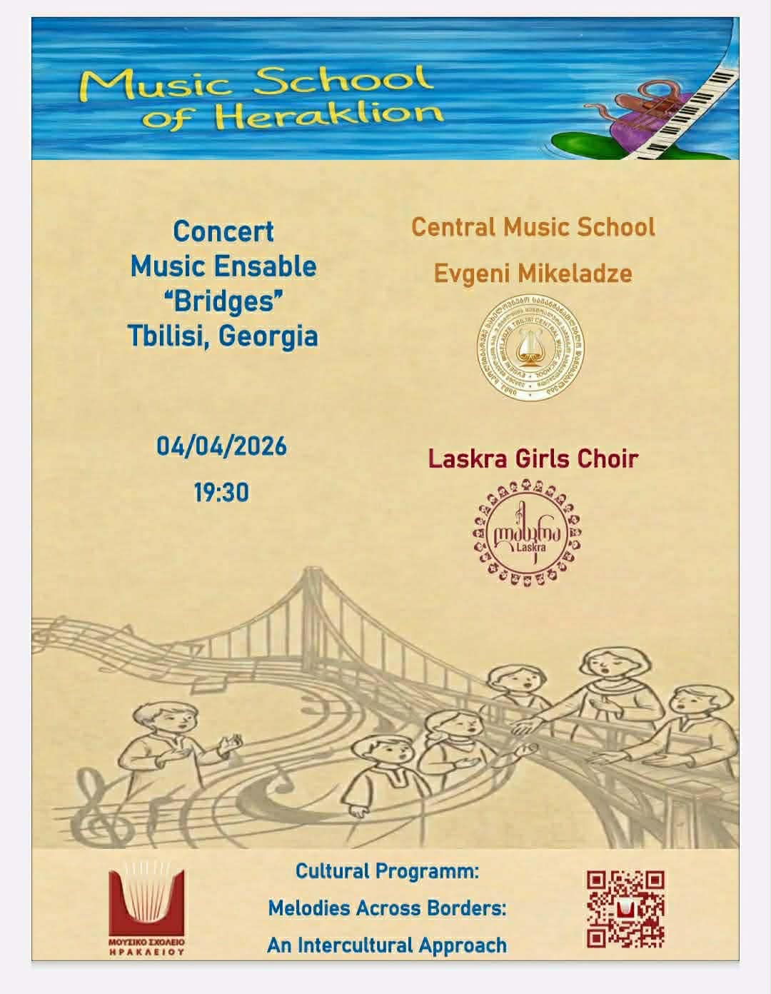 We would like to express our warm gratitude for the great welcome you offered to the Music School of Heraklion Crete in the effort to connect through music Tbilisi and Crete at the event that took place at your school (“Evgeni Mikeladze” Tbilisi Central Music School) on April 4, 20226. This cultural bridge between the students of your school and the students of the Heraklion Music School was very thrilling. Both the students and all those present who attended the event were impressed by the level of Music Education of the students of “Evgeni Mikeladze” Music School. Congratulations on the great work you implement in promoting Music Education among the youth of your country.